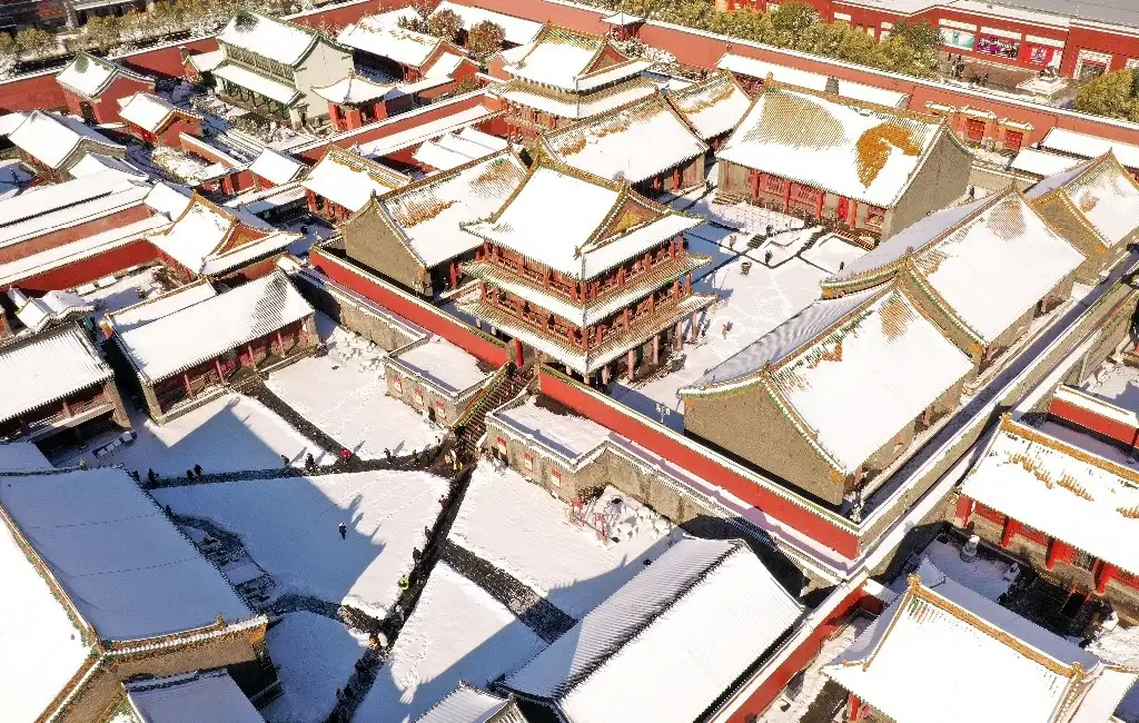 Shenyang. Vista del Palacio Imperial de esta ciudad china tras una nevada. El recinto fue construido en 1625 y fue usado como residencia a principios de la dinastía Qing (1616-1911). Foto Xinhua / Yao Jianfeng