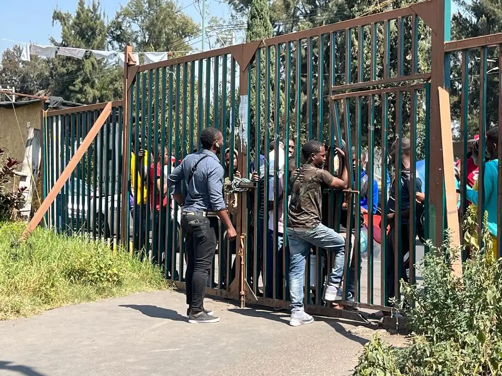 Ciudad de México. Vecinos de los alrededores del albergue de Tláhuac impiden el paso a migrantes a su unidad habitacional, luego que en los últimos meses incrementó la inseguridad. Foto Alfredo Domínguez