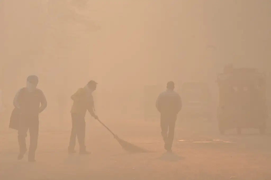 Amritsar. Un hombre barre una calle mientras otras personas caminan en medio de un denso smog que cubre esta ciudad ubicada al norte de la India. Foto Afp / Narinder Nanu