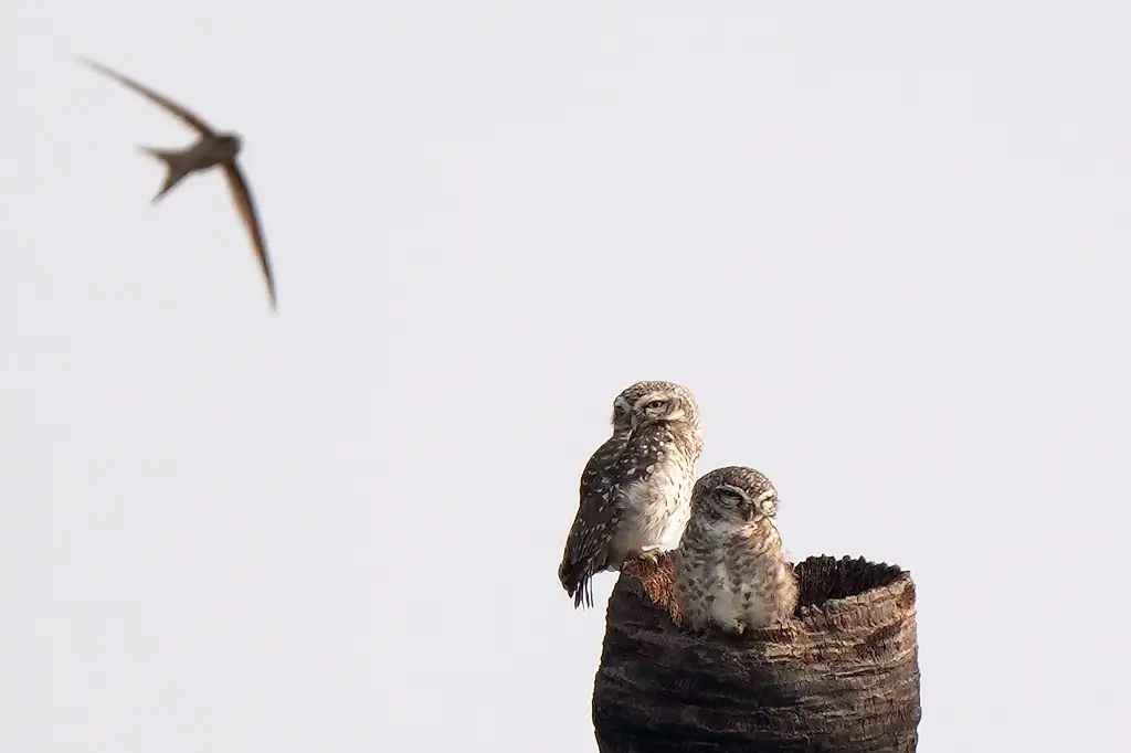 Hyderabad. Una pareja de búhos descansa sobre una palmera en esta zona de India. Foto Ap / Mahesh Kumar A.