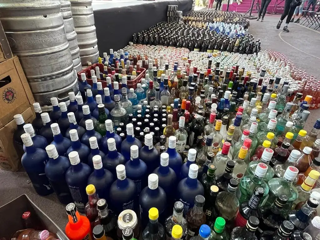 Ciudad de México. Más de dos mil litros de alcohol, decomisados en bares clandestinos de la alcaldía Iztapalapa, fueron destruidos como parte de un programa de seguridad en la demarcación. Foto Alfredo Domínguez