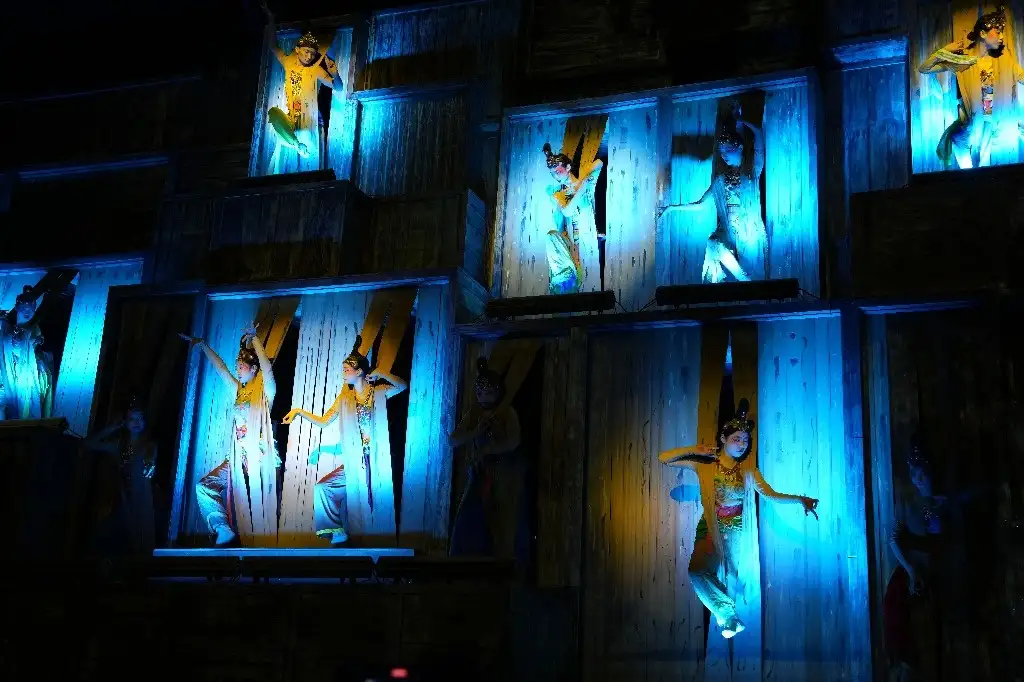 Dunhuang. Actrices realizan un drama en este condado chino, en la provincia de Gansu. Foto Xinhua / Zhang Zhimin