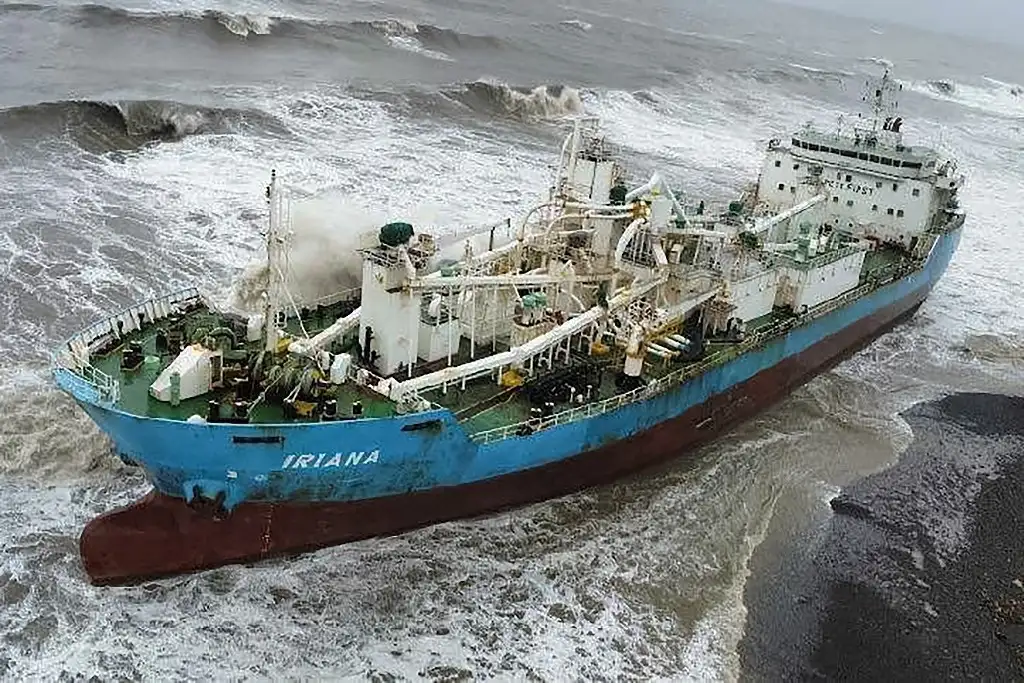 Condado de Pingtung. Carguero indonesio Iriana varado tras el paso del tifón Gaemi cerca de la costa de este condado, en el sur de Taiwán. Foto gobierno del condado de Pingtung vía Ap