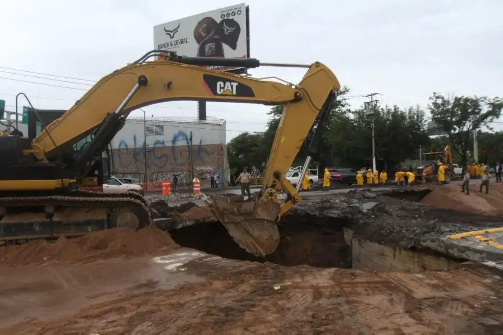 Zapopan, Jalisco. Un nuevo socavón se abrió a unos metros del que se destapó ayer en avenida López Mateos de este municipio. No se reportaron personas lesionadas. Foto Arturo Campos Cedillo.