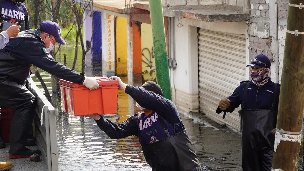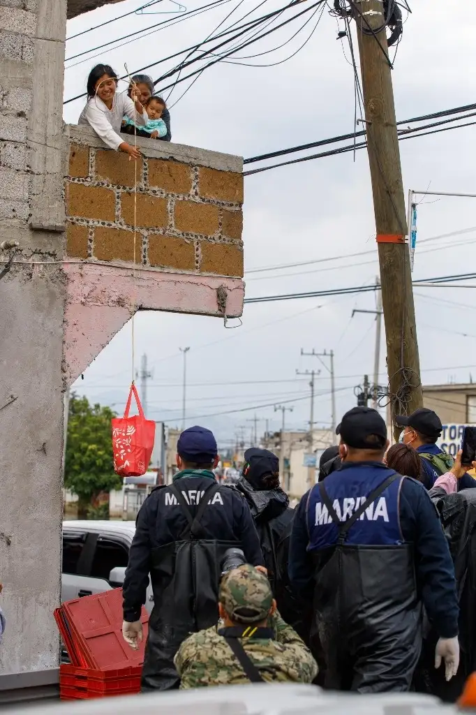 La Secretaría de Marina inició la tarde del viernes la primera entrega de mil raciones alimenticias a los damnificados por las inundaciones en las colonias Jacalones y Culturas de México. A bordo de unidades especiales tipo Ural, inició la fase más fuerte del Plan Marina de auxilio a la población.
