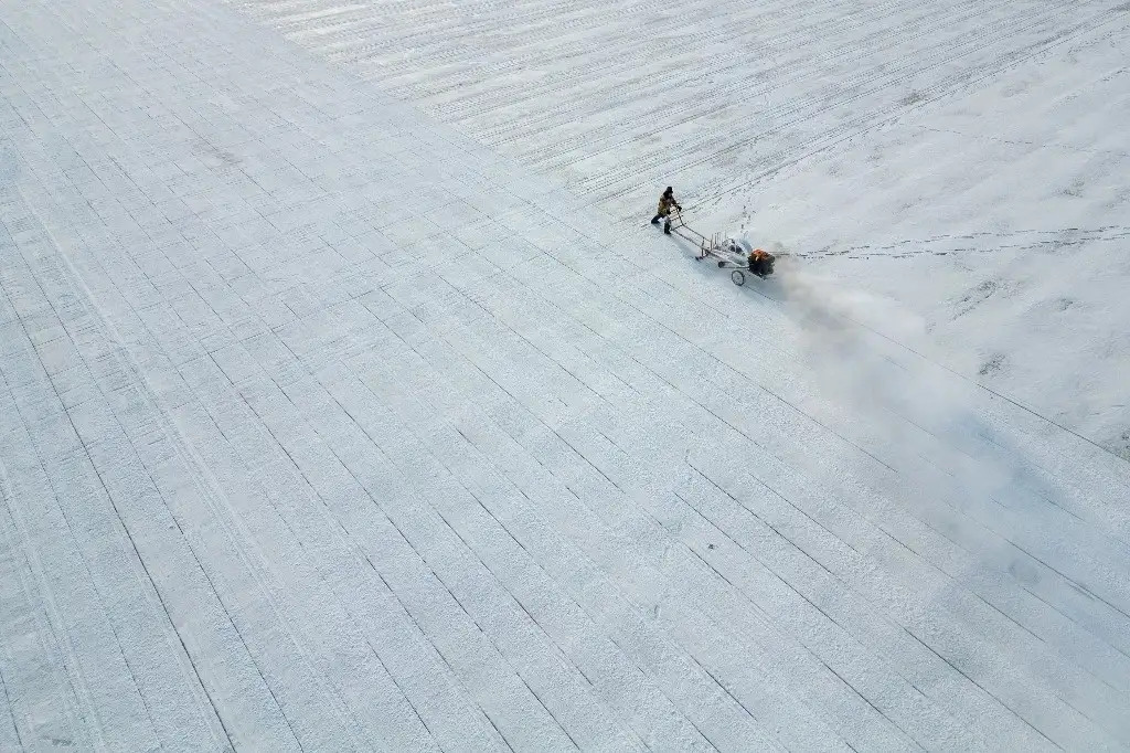 Harbin. Un trabajador recoge hielo del río Songhua en esta ciudad china. A medida que comienza esta temporada, se cortan cubitos de hielo y se elevan desde el congelado cuerpo de agua para construir paisajes en las atracciones turísticas que cruzan la urbe. El más destacado de ellos es Harbin Ice-Snow World, un famoso parque temático estacional que goza de gran popularidad cada invierno. Foto Xinhua / Zhang Tao