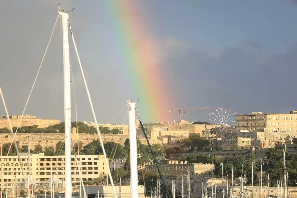 Ta' Xbiex. Un arcoíris brilla sobre el cielo en esta ciudad de Malta. Foto Xinhua / Chen Wenxian