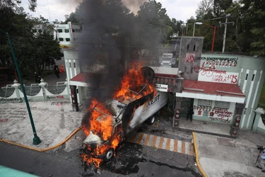 Ciudad de México. Elementos de la Secretaría de Seguridad Ciudadana local resguardan a transportistas para evitar que bloqueen la calzada Zaragoza, al cruce con Agua Caliente, en la alcaldía Iztacalco. Foto Alfredo Domínguez