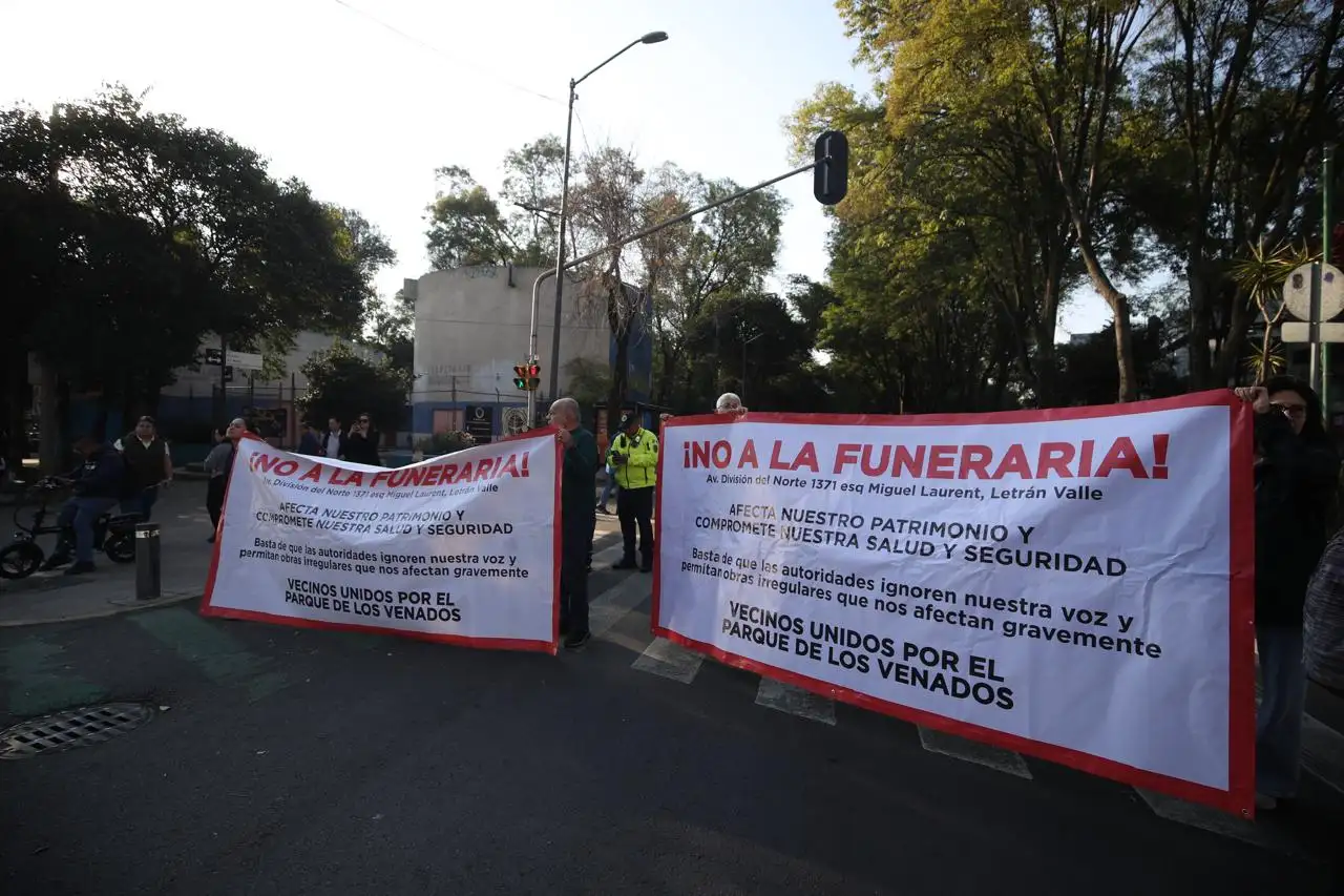Ciudad de México. Vecinos de la Alcaldía Benito Juárez cerraron la circulación en la avenida División del Norte y Miguel Laurent para manifestar su rechazo a la construcción de una funeraria en dicha ubicación. Foto Yazmín Ortega Cortés Yazmín Ortega Cortés