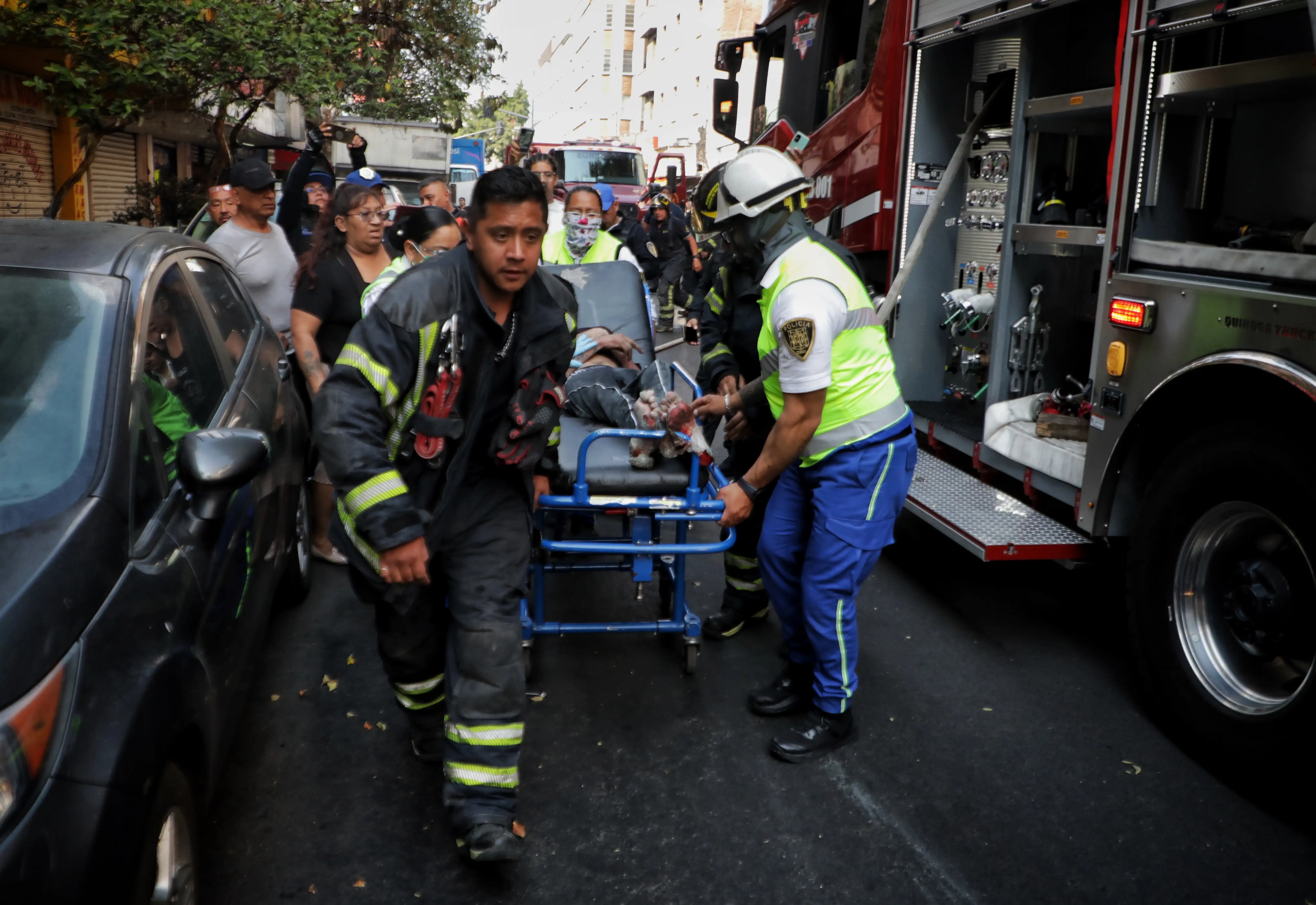 Incendio en el departamento 7 del edificio 117, en la calle de López, en el centro de la capital. Un hombre de aproximadamente 30 años, con quemaduras en los pies, fue rescatado por vecinos mientras bomberos sofocaban el fuego.Foto: Jair Cabrera Torres / La Jornada Foto: Jair Cabrera Torres / La Jornada