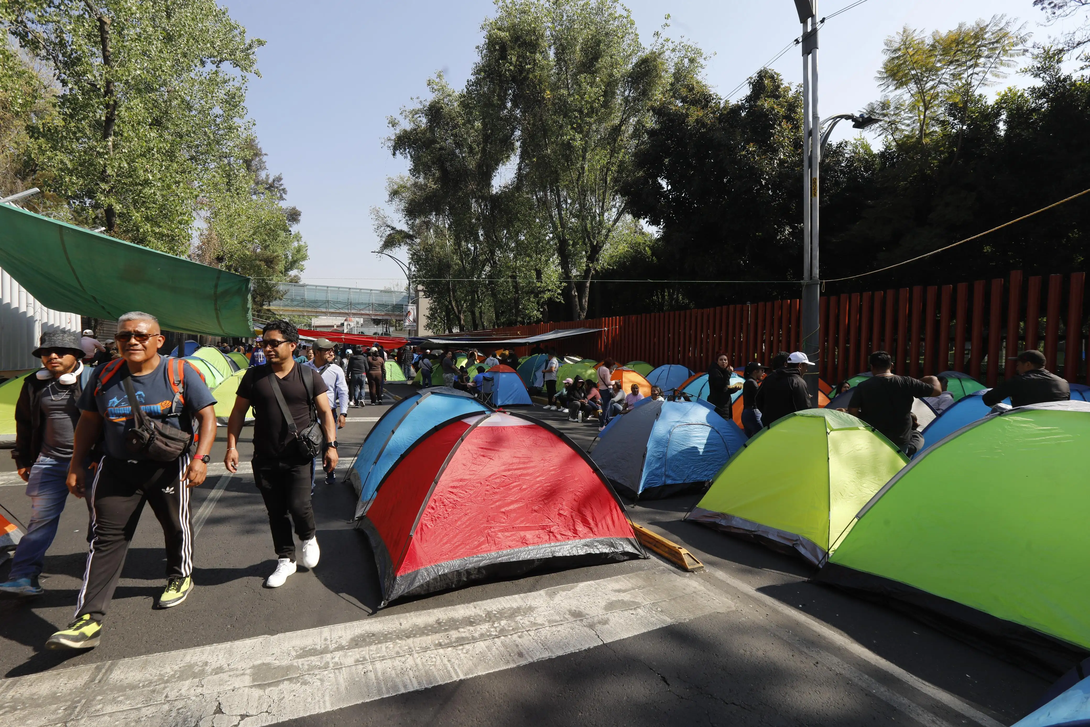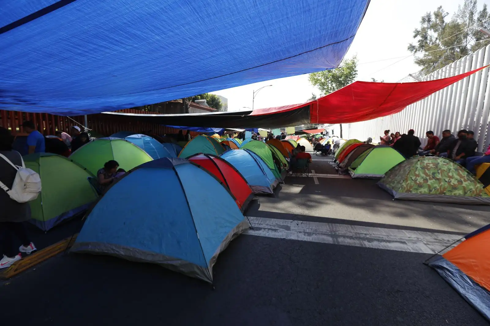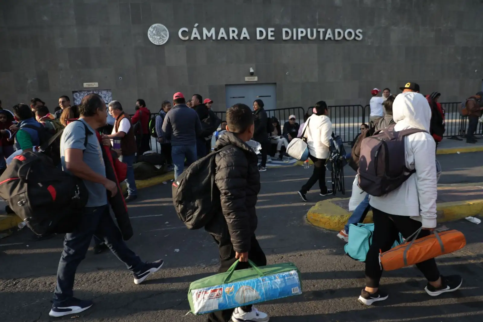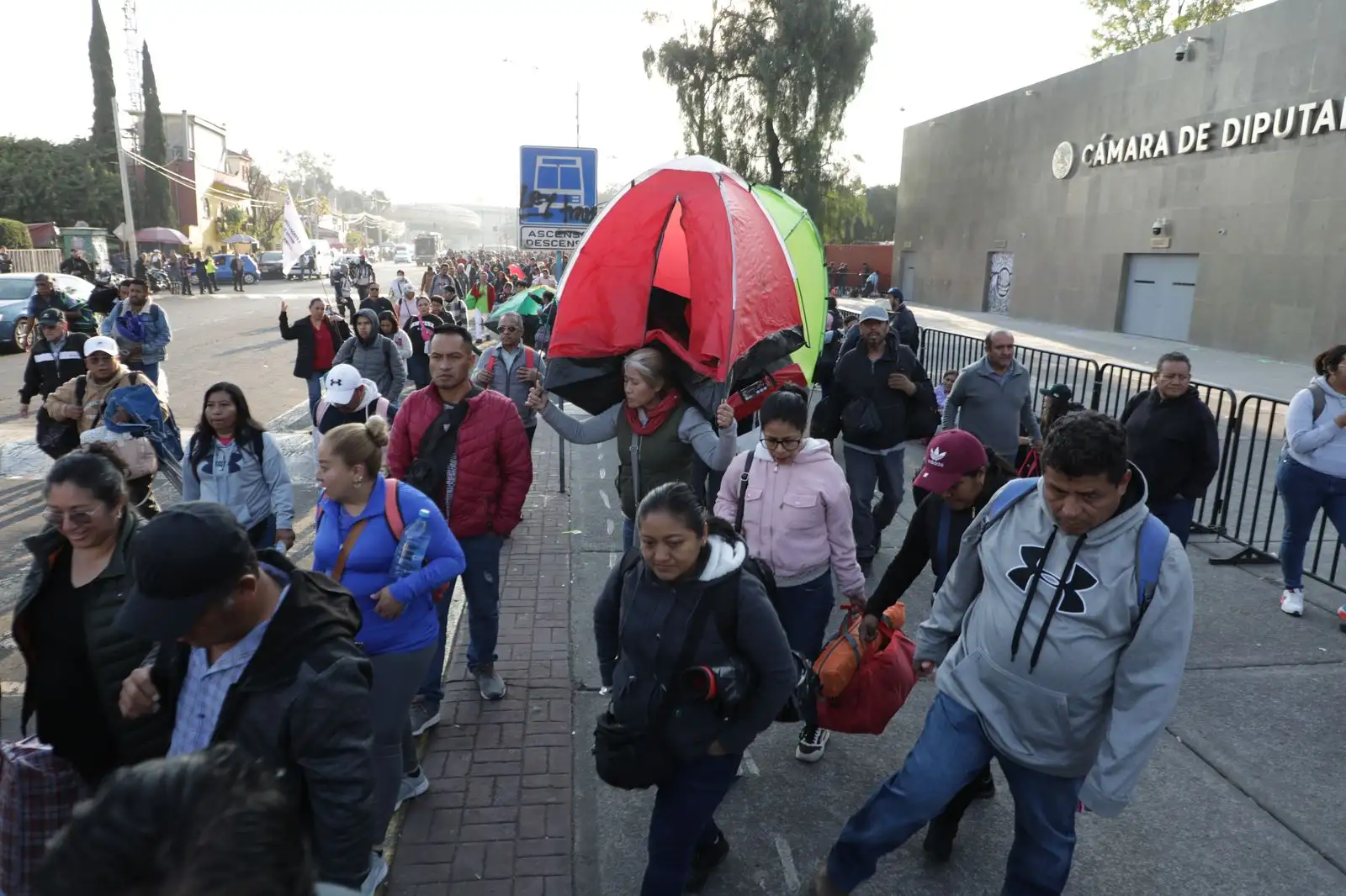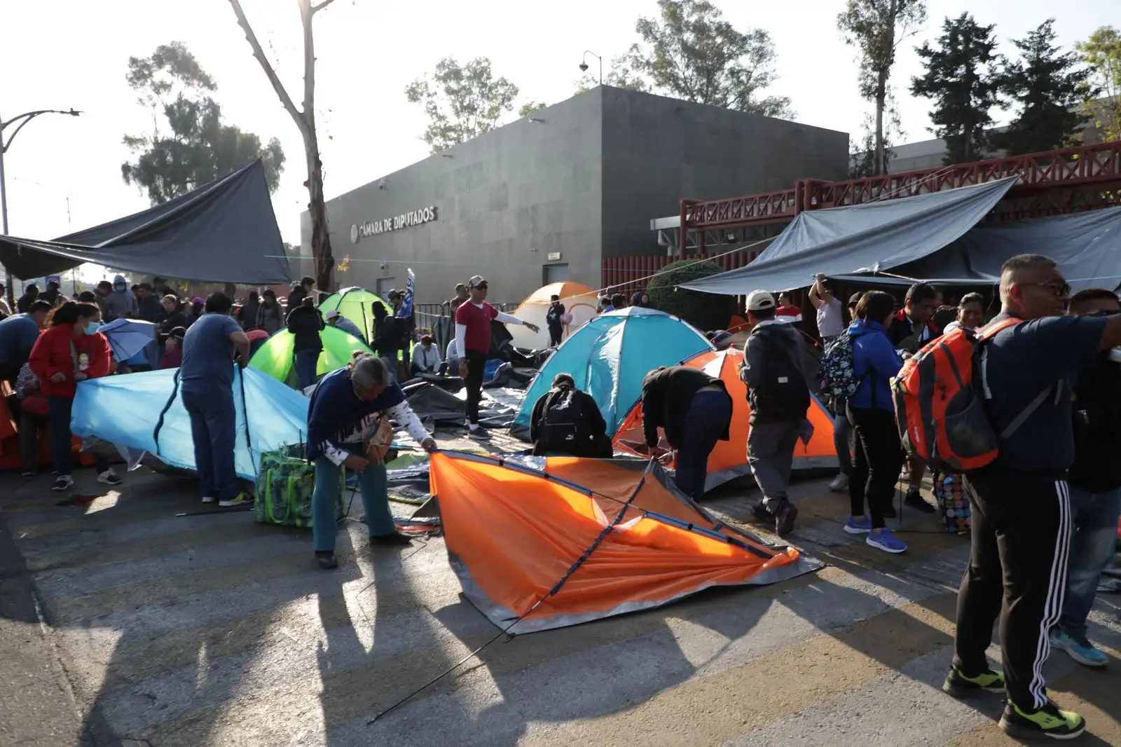 Ciudad de México. 27 de febrero, 2025. Maestros de la sección 22 de Oaxaca instalaron un plantón en los principales accesos a la Cámara de Diputados en demanda de que se retire la iniciativa de reforma a la Ley del Issste, enviada por la presidenta Claudia Sheinbaum Pardo, el pasado 7 de febrero, porque “no responde a la exigencia de la base magisterial de aplicar una reforma, pero de fondo, a esta ley”. Cientos de docentes comenzaron a instalar casas de campaña para pernoctar frente a los accesos principales del recinto legislativo, por lo que no se descarta que realicen alguna movilización.