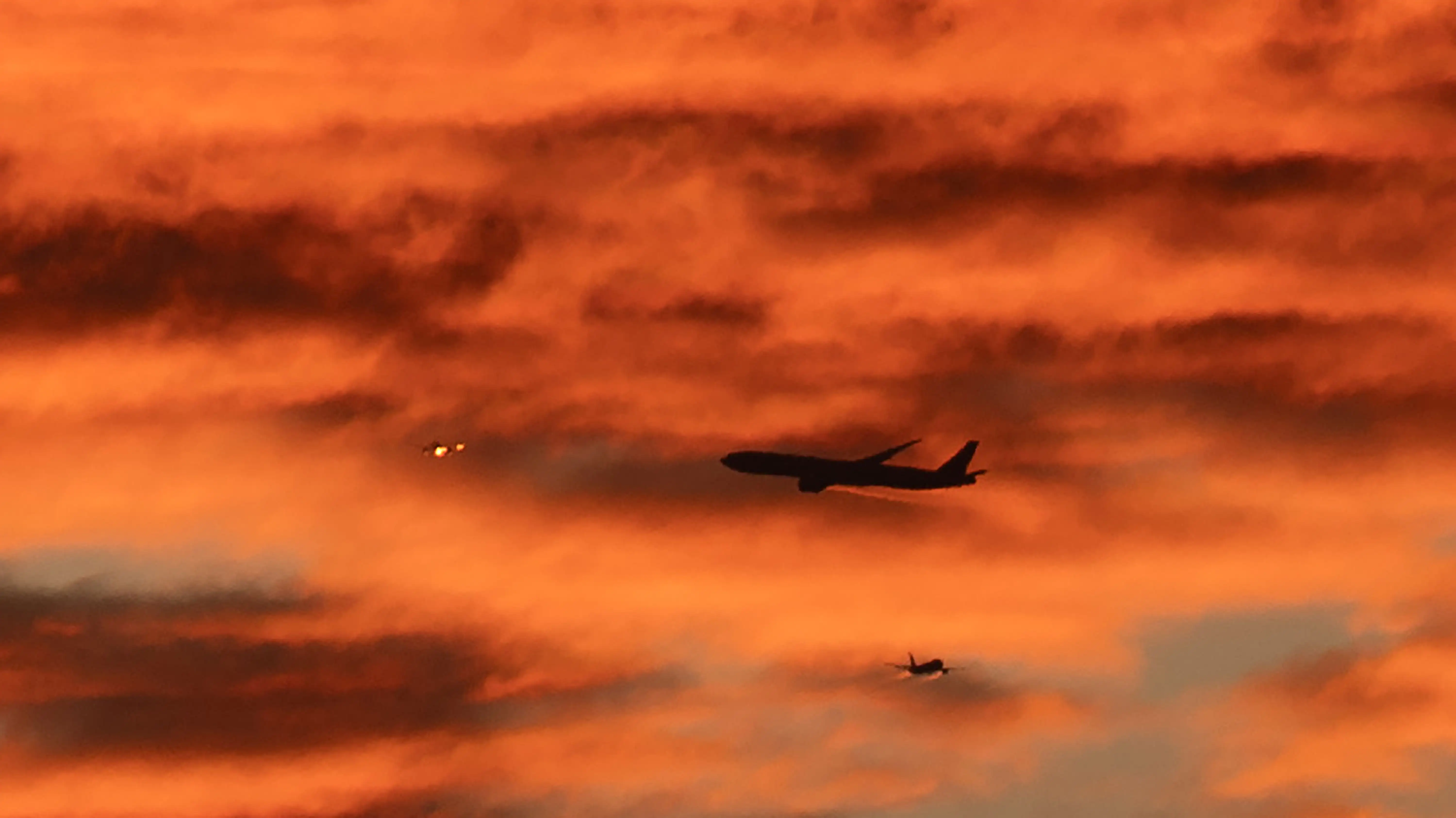 Manila. Tres aviones sobrevuelan la provincia de Bataan durante el atardecer. Foto Afp / Ted Aljibe