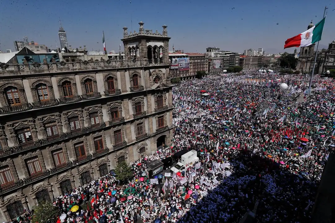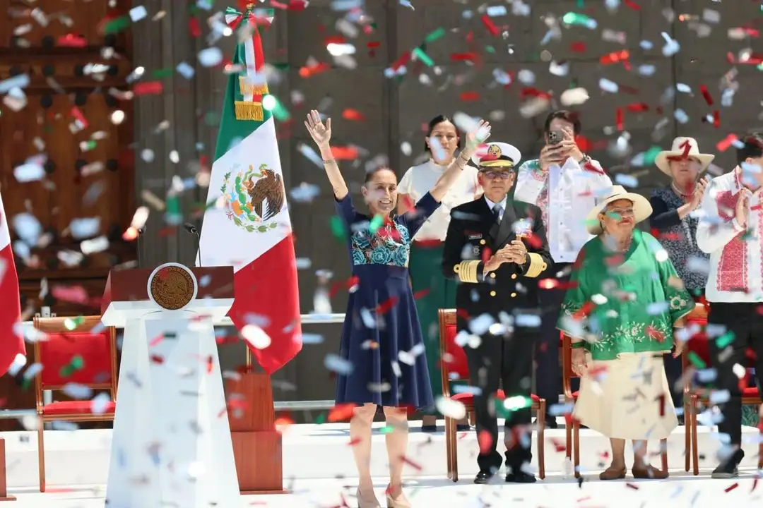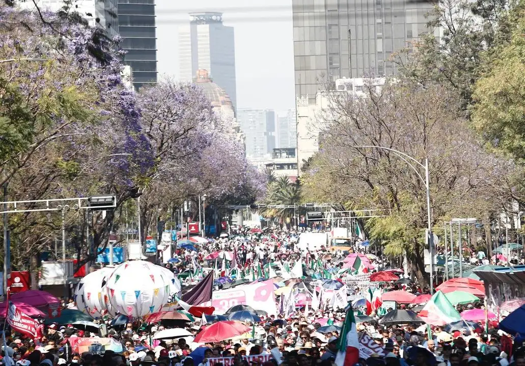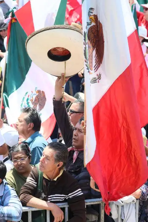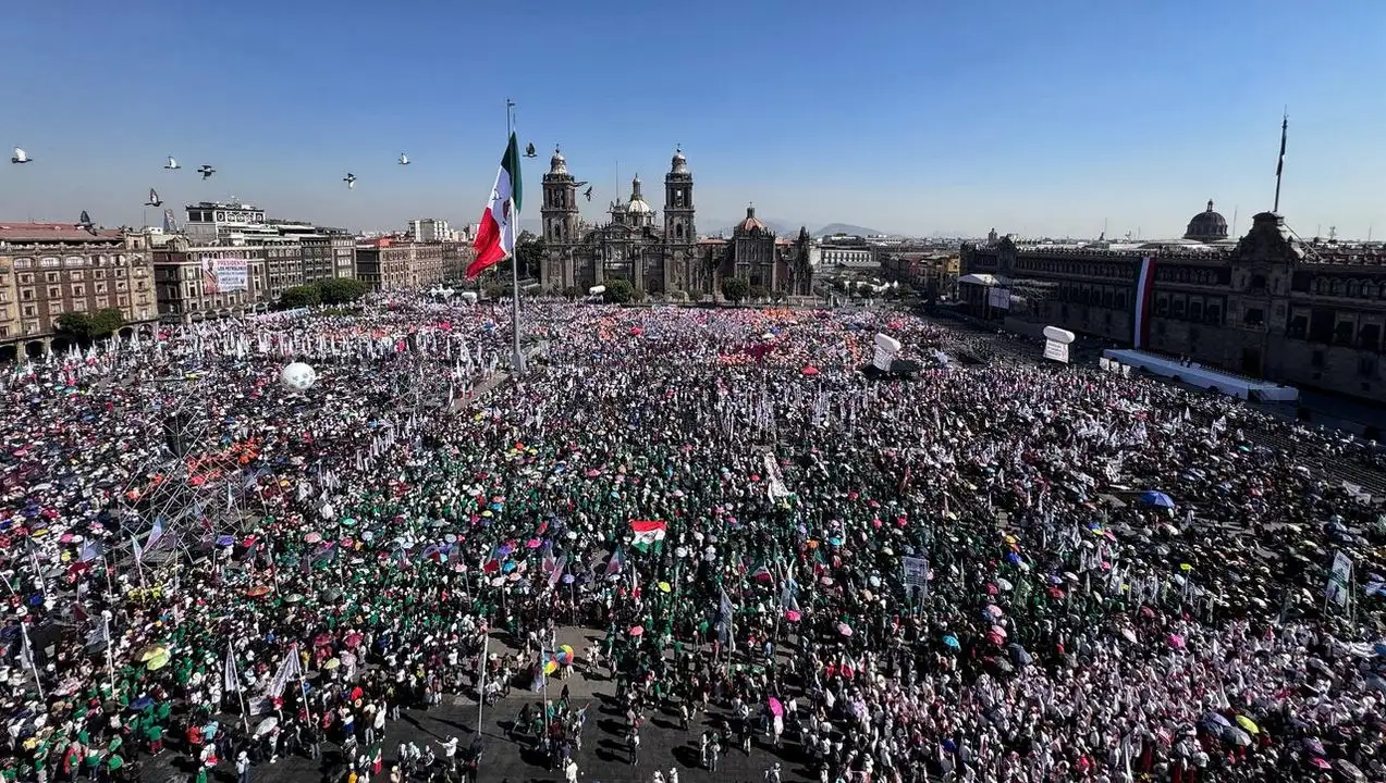 Ciudad de México. 9 de marzo de 2025. El cariño y entusiasmo de la gente hacia la presidenta Claudia Sheinbaum Pardo se hizo presente una vez más. Miles de personas se reunieron en el Zócalo capitalino "en defensa de la soberanía nacional". La mayoría de los contingentes portaban banderas de México y entonaban el himno nacional. Además no dejaron de gritar consignas. "¡Claudia escucha, la asamblea está en tu lucha! ¡Es un honor, estar con Claudia hoy! ¡Presidenta, presidenta!" y "¡No vamos a regresar al modelo neoliberal!"