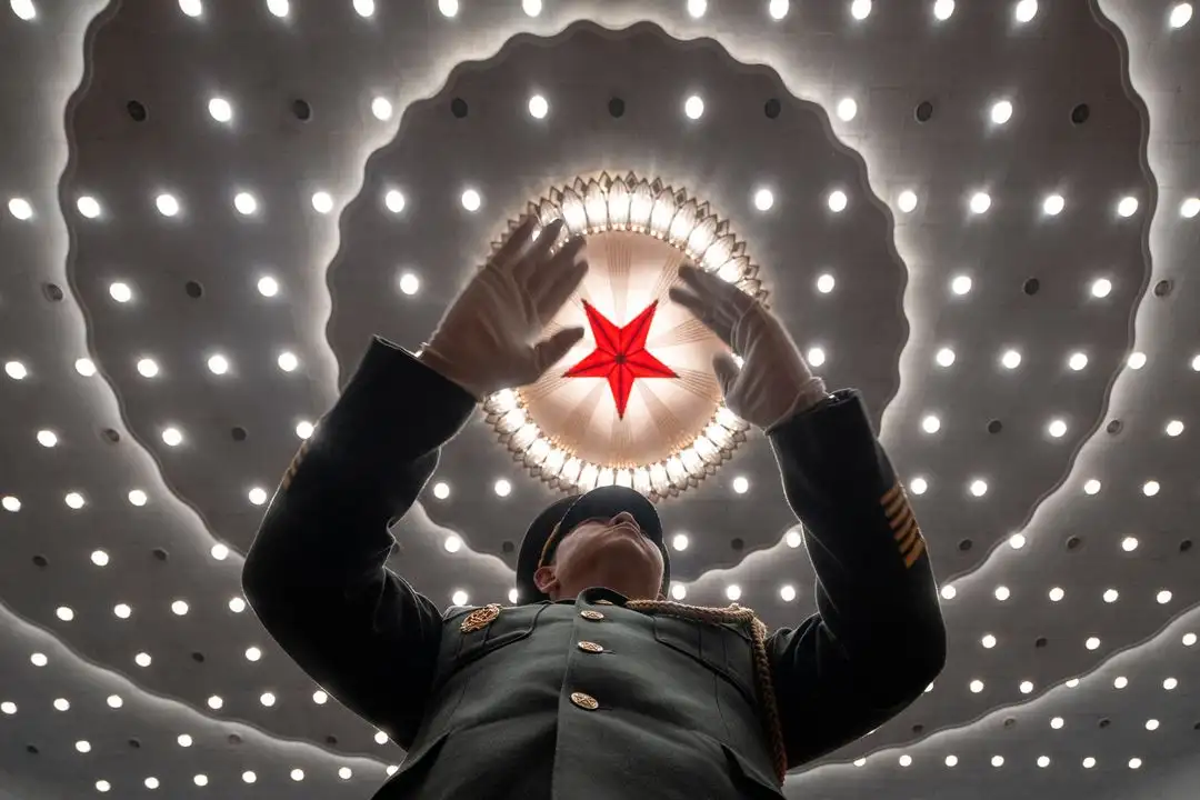 Pekín. El director de una banda militar realizando su trabajo durante la ceremonia de clausura del Congreso Nacional Popular celebrado en el Gran Salón del Pueblo en la capital china. Foto Ap / Ng Han Guan
