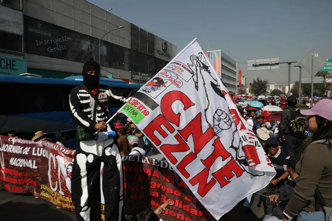 Ciudad de México. Integrantes de distintas secciones de la CNTE marchan de la antigua Normal Superior rumbo al Zócalo, en el marco del paro nacional de 72 horas. Foto Jair Cabrera Torres