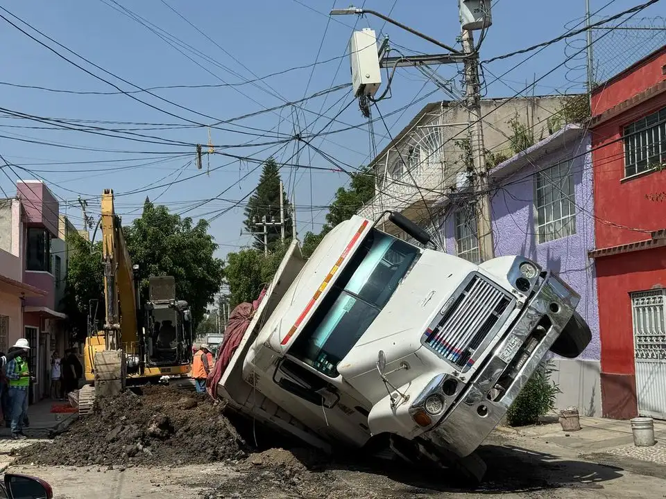 Ciudad de México. Un camión tortón que transportaba tierra para una obra en construcción volcó en la calle 325 en la colonia Nueva Atzacoalco de la alcaldía Gustavo A Madero. No se registraron personas heridas. Foto Alfredo Domínguez