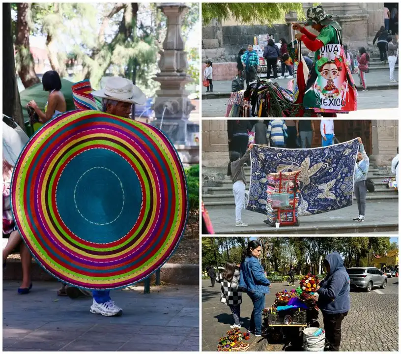 Ciudad de México. Vendedores de artesanías en el centro de la alcaldía Coyoacán, el cual recorren ofreciendo sus productos a turistas nacionales y extranjeros. Foto