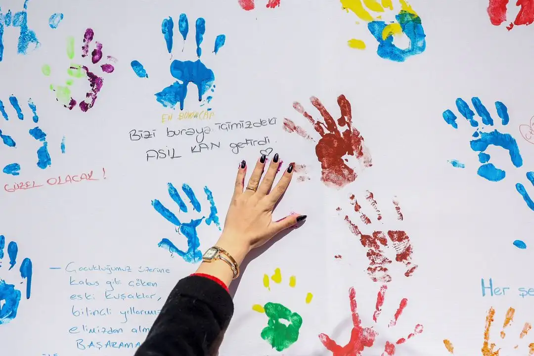 Ankara. Una mujer deja la huella de su mano en una pancarta gigante durante las primarias presidenciales, junto al único candidato del opositor Partido Republicano del Pueblo, Ekrem Imamoglu, frente a la sede del partido en la capital turquía. Foto Afp / Adem Altan