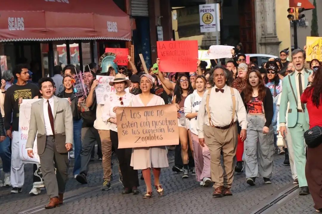 Artistas y gestores culturales de Veracruz marcharon en Xalapa para rechazar la propuesta de la gobernadora Rocío Nahle García de fusionar las Secretarías de Turismo y Cultura. Foto: Carlos Nava/ La Jornada