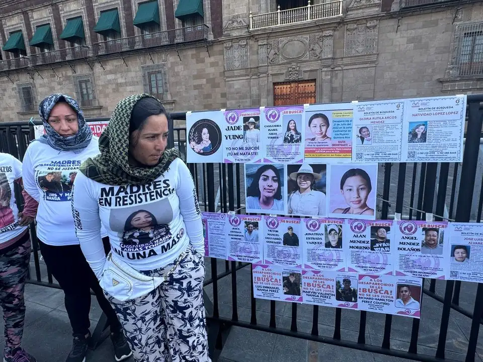 Ciudad de México. Madres buscadoras del estado de Chiapas se manifiestan frente a Palacio Nacional, para exigir que las autoridades hagan su trabajo y den información verídica y actualizada del paradero de sus familiares desaparecidos. Foto Luis Castillo