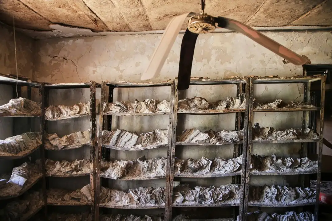 Jartum. Estanterías muestran documentos quemados dentro de una sala carbonizada del Palacio Republicano, tras su recuperación por parte del ejército sudanés de manos del grupo paramilitar Fuerza de Apoyo Rápido en la capital sudanesa. Foto Ap