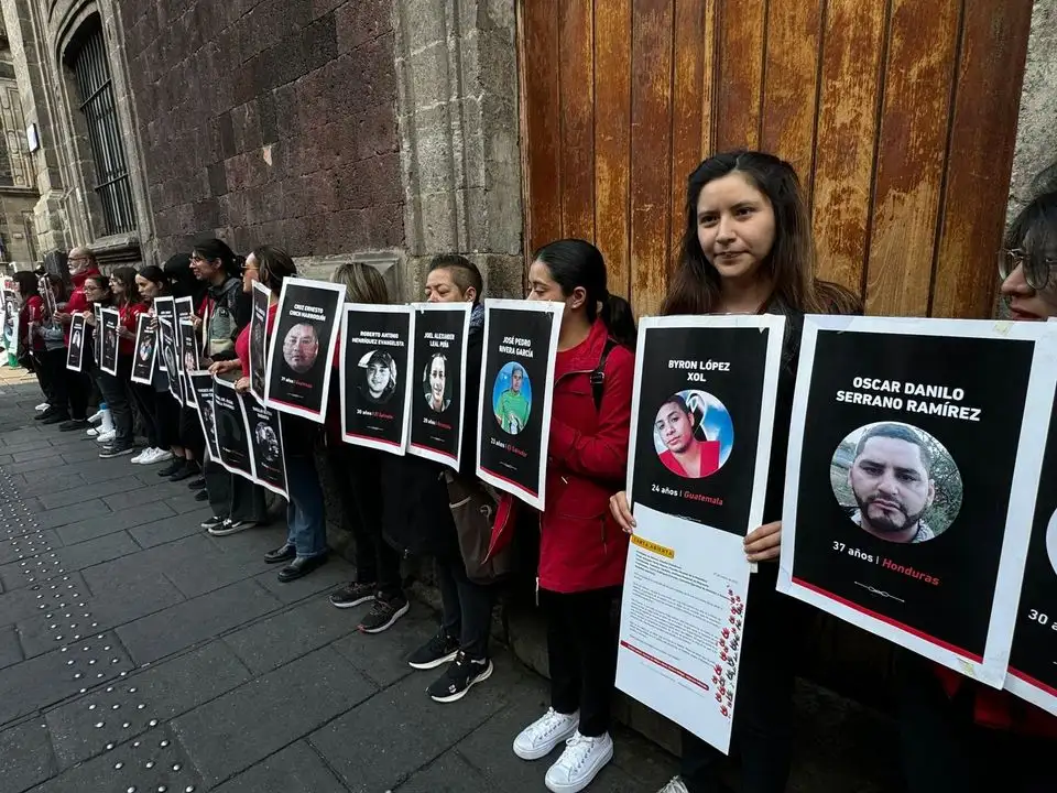 Ciudad de México. El Instituto para las Mujeres en la Migración realiza una concentración en las inmediaciones de Palacio Nacional para dar a conocer su posicionamiento y algunas cartas de las familias de los migrantes fallecidos y sobrevivientes del incendio de la estancia provisional de Ciudad Juárez, Chihuahua. Foto Luis Castillo