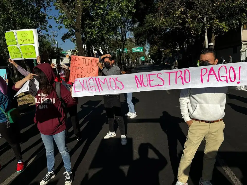 Ciudad de México. Trabajadores de la Secretaría de Relaciones Exteriores (SRE) bloquean la avenida Miguel Ángel de Quevedo, a la altura de Taxqueña, en protesta por el atraso de pagos. Foto Luis Castillo