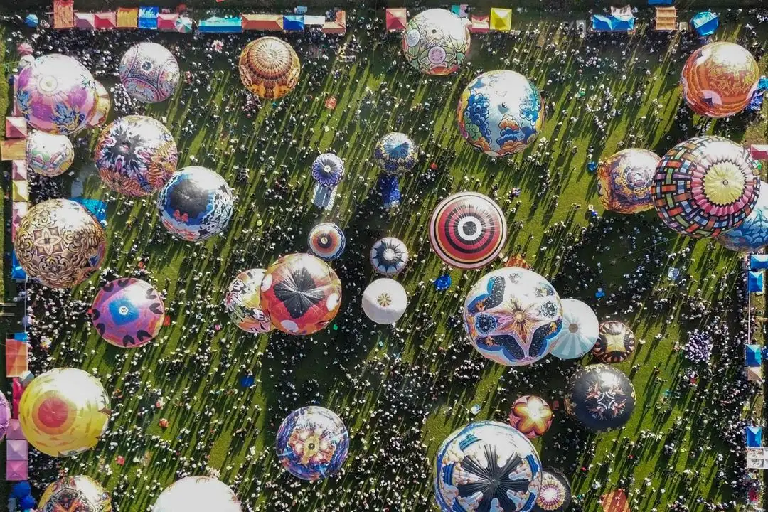 Wonosobo. Globos aerostáticos, en su mayoría hechos de papel reciclado y atados con cuerdas, flotan en el aire durante el festival anual de globos de este tipo, que se celebra desde 1950 en el marco del Eid al-Fitr, la festividad islámica que marca el final del Ramadán, en esta ciudad de Java Central. Foto Afp / Devi Rahman