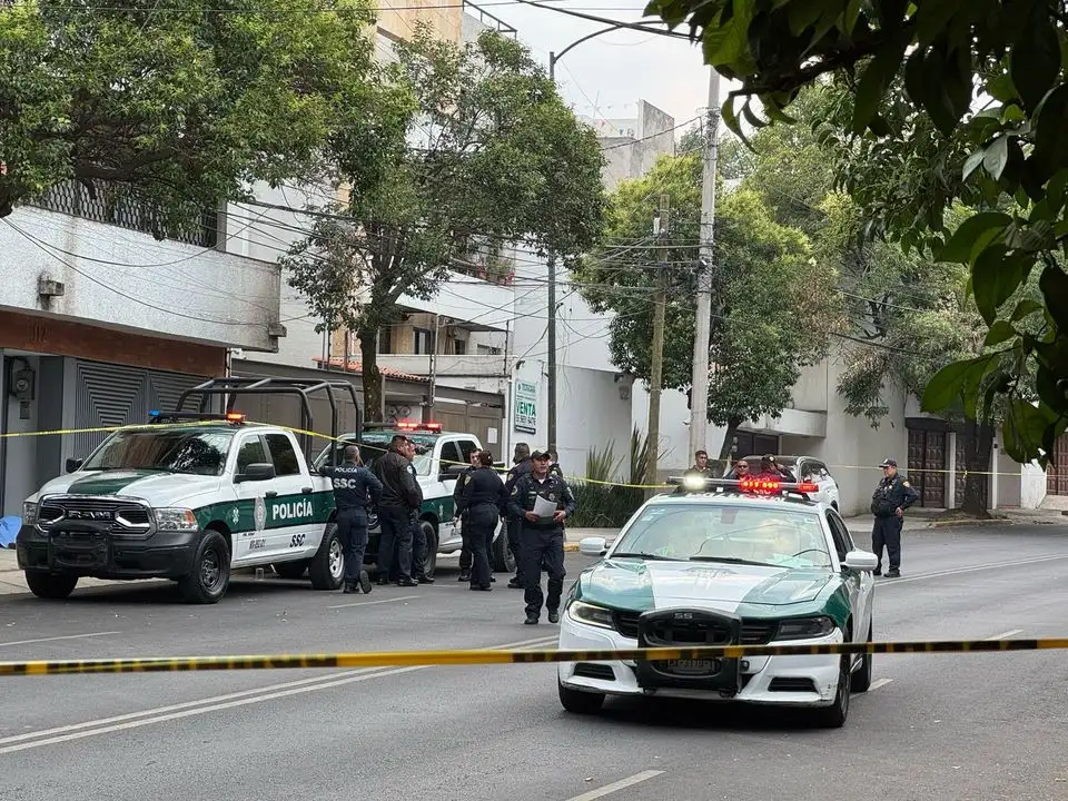 Ciudad de México. El cuerpo de una persona, que presenta lesiones provocadas por un arma de fuego, fue encontrado sobre la calle Fujiyama, al cruce con Luis Kuhne, en la colonia las Águilas de la alcaldía Álvaro Obregón. Policías resguardan la zona. Foto Alfredo Domínguez