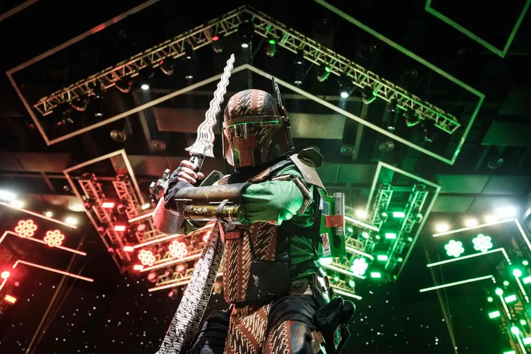 Yakarta. Un fan con un disfraz de mandaloriano al estilo indonesio posa después de un evento para fans que celebra el Día de Star Wars, una fecha elegida como un juego de palabras con la frase "Que la Fuerza te acompañe" de la icónica saga de películas de ciencia ficción en la capital indonesia. Foto Afp / Yasuyoshi