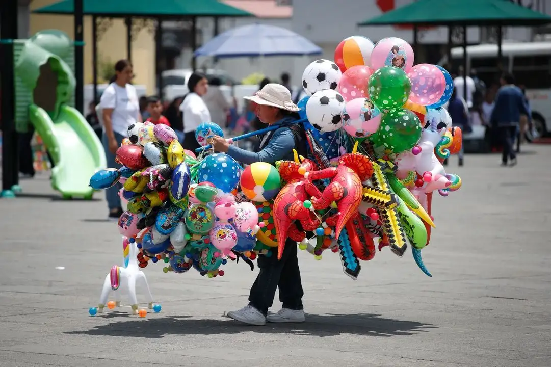 Tlalnepantla. Una mujer vende globos en la Plaza Gustavo Baz, en este municipio mexiquense. Foto Cristina Rodríguez