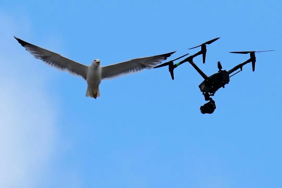 Ciudad del Vaticano. Un dron utilizado para transmisión televisiva es atacado por una gaviota sobre la Plaza de San Pedro, donde 133 cardenales se reúnen en el segundo día del cónclave para elegir al sucesor del difunto papa Francisco. Foto Ap / Gregorio Borgia