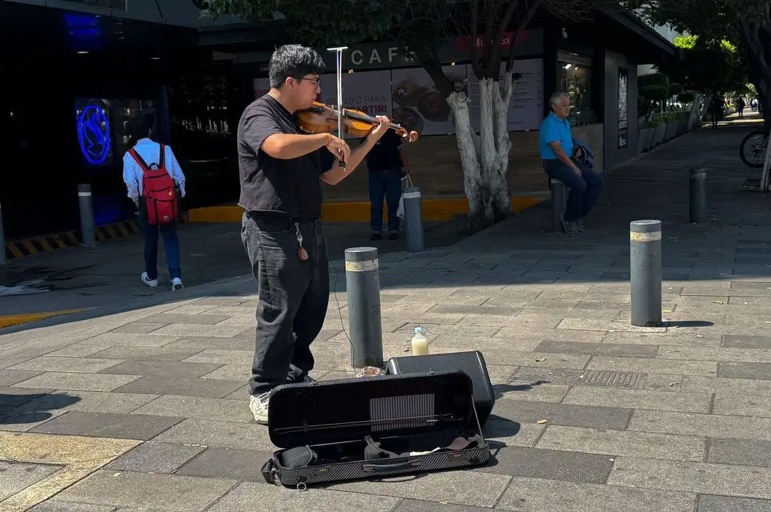 Ciudad de México. Un joven toca el violín para conseguir dinero en las calles de la capital mexicana. Foto Cristina Rodríguez