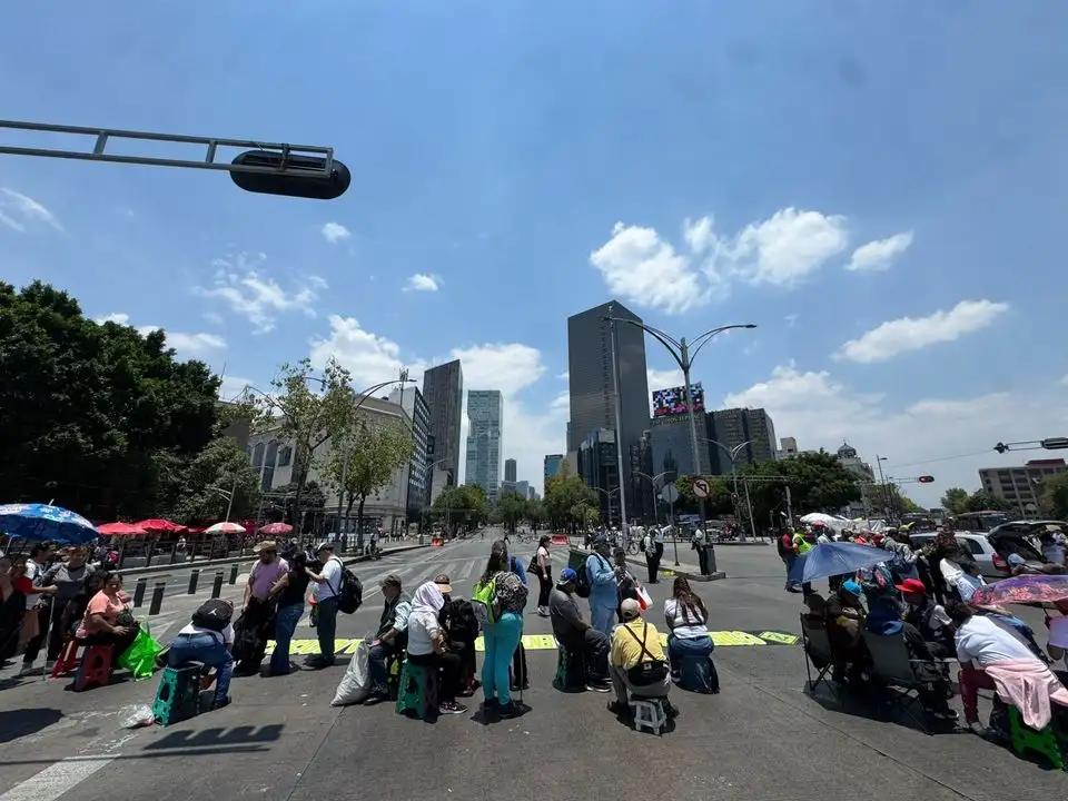 Ciudad de México. Comerciantes ambulantes débiles visuales bloquean Reforma, al cruce con Hidalgo, para exigir espacios para vender sus productos en el Metro. Foto Alfredo Domínguez