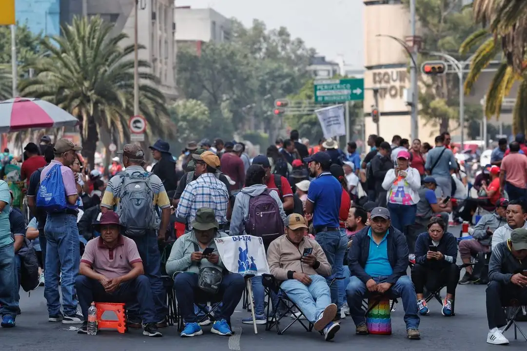 Ciudad de México. 21 de mayo de 2025. Maestros de la Coordinadora Nacional de Trabajadores de la Educación (CNTE) de diferentes estados bloquean diversos puntos de capital del país, lo que paralizó el tránsito vial y el transporte público en zonas como Reforma, Insurgentes y Juárez.