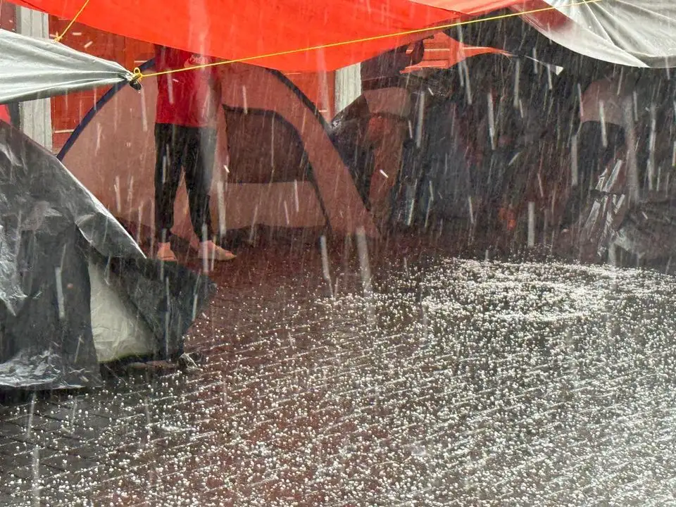 Ciudad de México. Granizada en la zona centro de la capital del país. El campamento de maestros disidentes resultó con afectaciones leves. Foto: Gustavo Castillo
