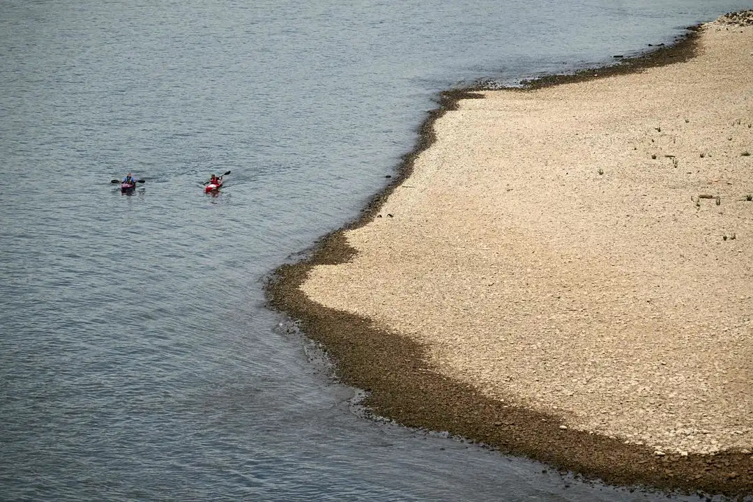 Colonia. Canoas reman junto al lecho parcialmente seco del Rin, en esta ciudad alemana. Foto Afp / Ina Fassbender