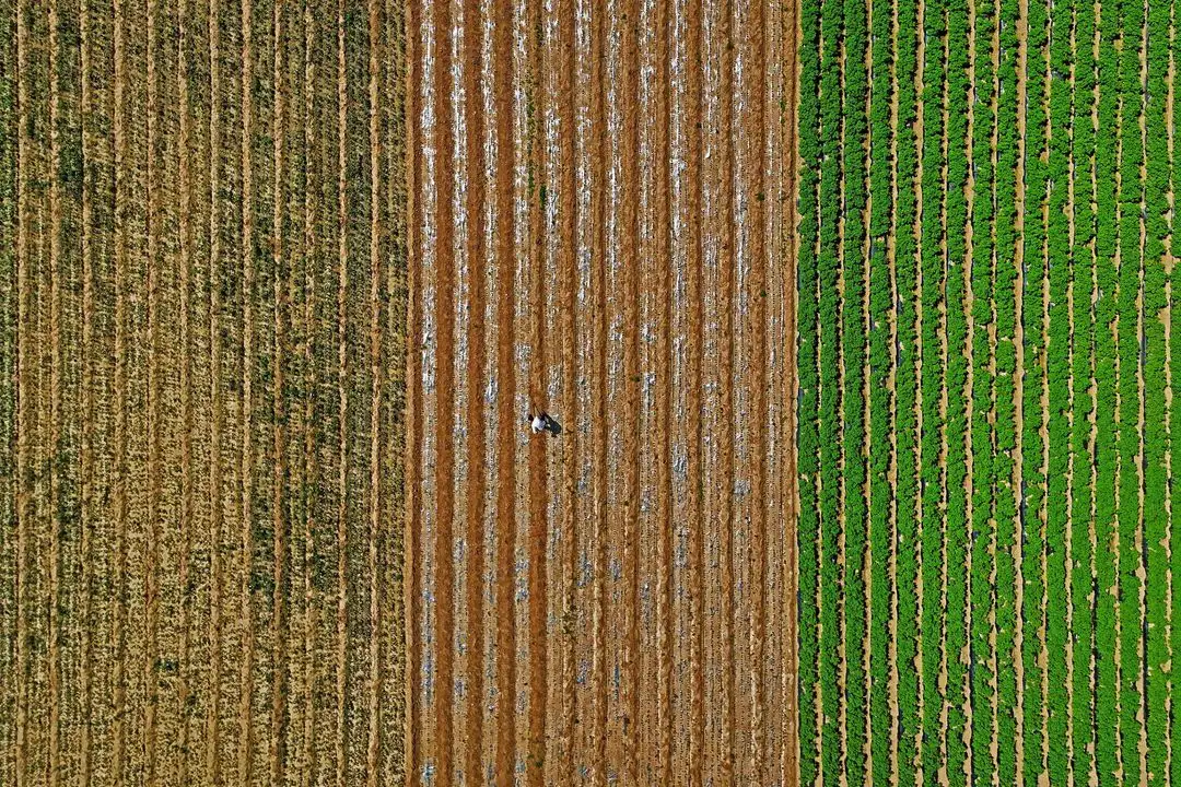 Yantai. Un agricultor trabaja en el campo en una aldea de esta ciudad, en la provincia oriental china de Shandong. Foto Afp / China Out