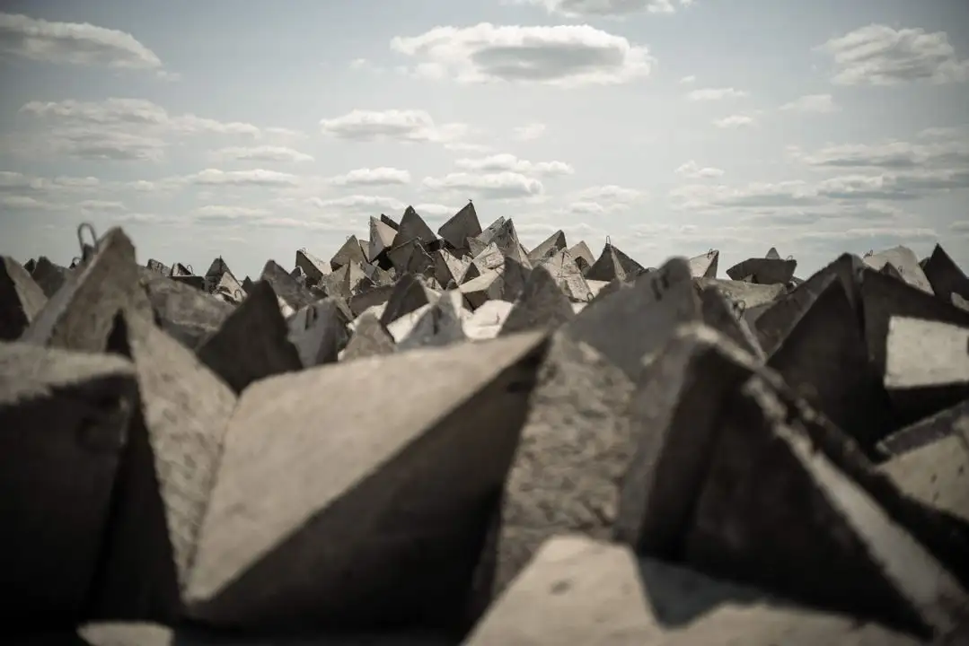 Donietsk. Una pila de dientes de dragón, bloques de defensa de hormigón ucranios, se observan durante la construcción de líneas de defensa en este óblast ubicado al este del país europeo. Foto Afp / Florent Vergnes