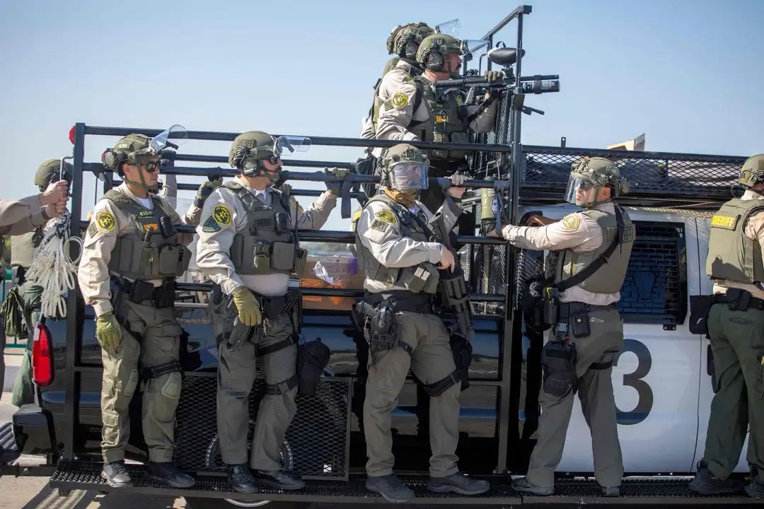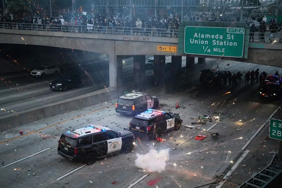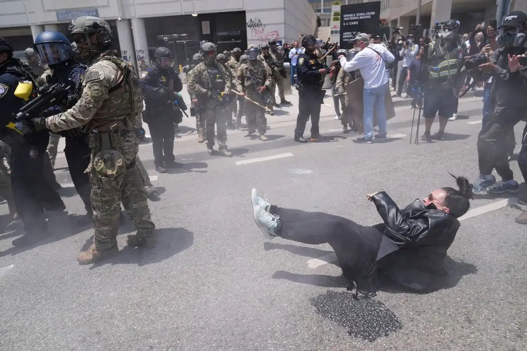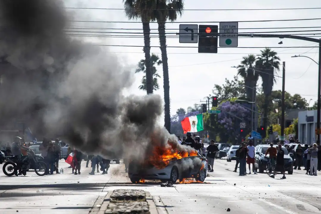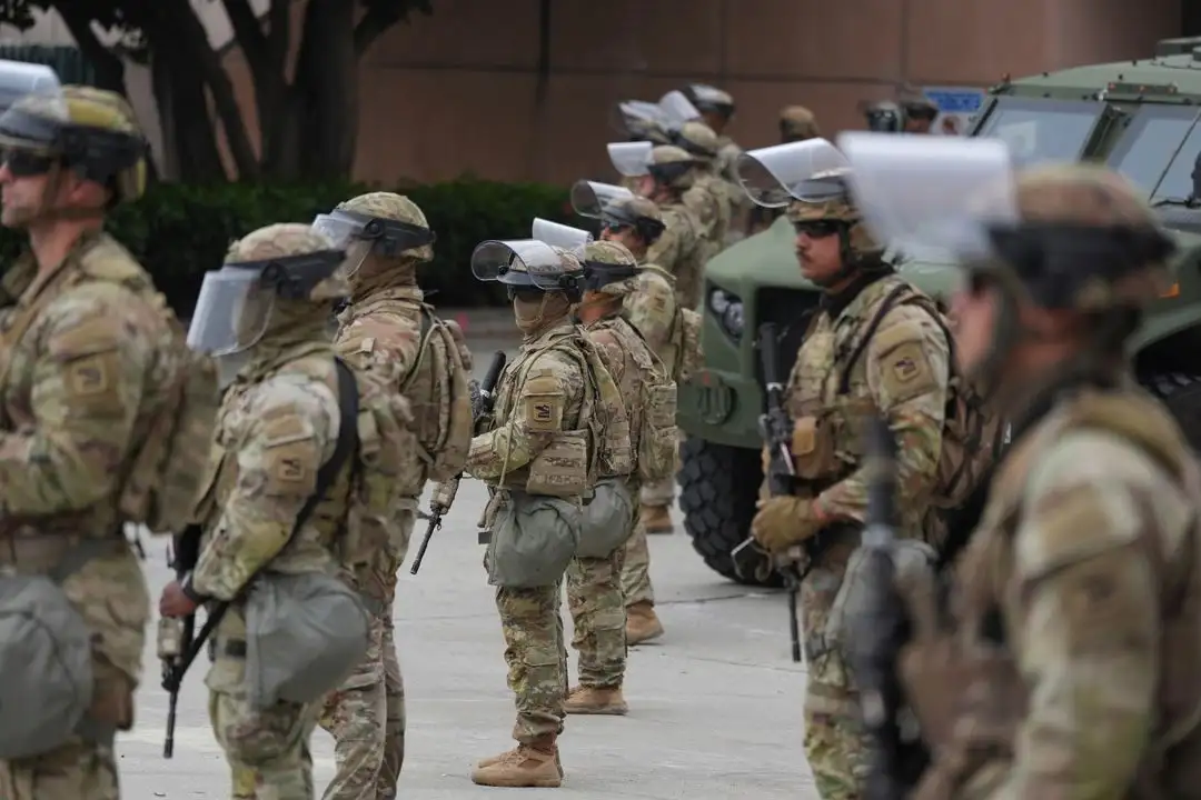 Los Ángeles. 8 de junio de 2025. Alrededor de 300 efectivos de la Guardia Nacional llegaron a Los Ángeles a primera hora del domingo por orden del presidente de EU, Donald Trump. Aparentemente, el despliegue de estos elementos estatales se desplegó por primera vez en varias décadas sin una solicitud de su gobernador Gavin Newsom, quien acusó a Trump de una “completa sobrerreacción” diseñada para crear un espectáculo de fuerza. La llegada de estas fuerzas se produce después de dos días de protestas contra las políticas de arresto y deportación de migrantes que comenzaron el viernes en el centro de Los Ángeles antes de extenderse el sábado a Paramount, un barrio predominantemente latino al sur de la ciudad, y la vecina Compton. (Ap, Afp, Reuters y The Independent)
