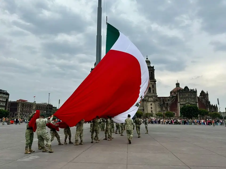 Ciudad de México. Militares arrían la bandera nacional en el Zócalo capitalino. Foto: Luis Castillo