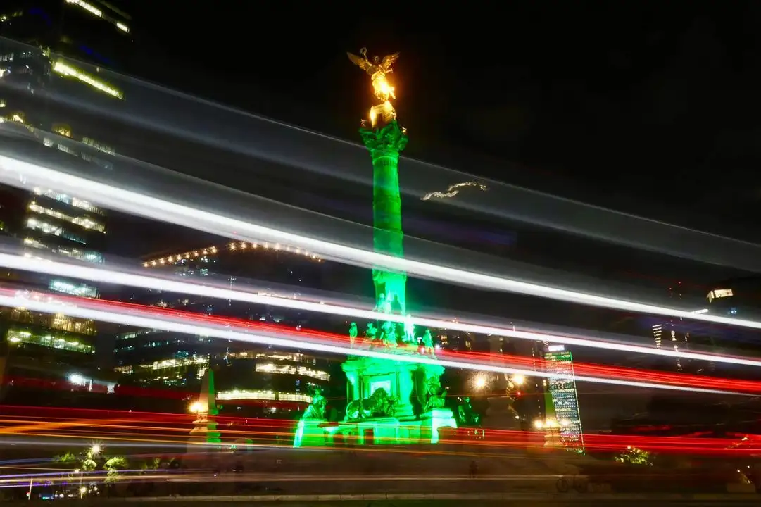 La capital encendió su brillo rumbo al Mundial 2026: más de 40 inmuebles se tiñeron de verde para marcar el inicio del conteo regresivo. La jefa de Gobierno, Clara Brugada, lideró el acto simbólico desde el corazón de la ciudad. Foto: Luis Castillo
