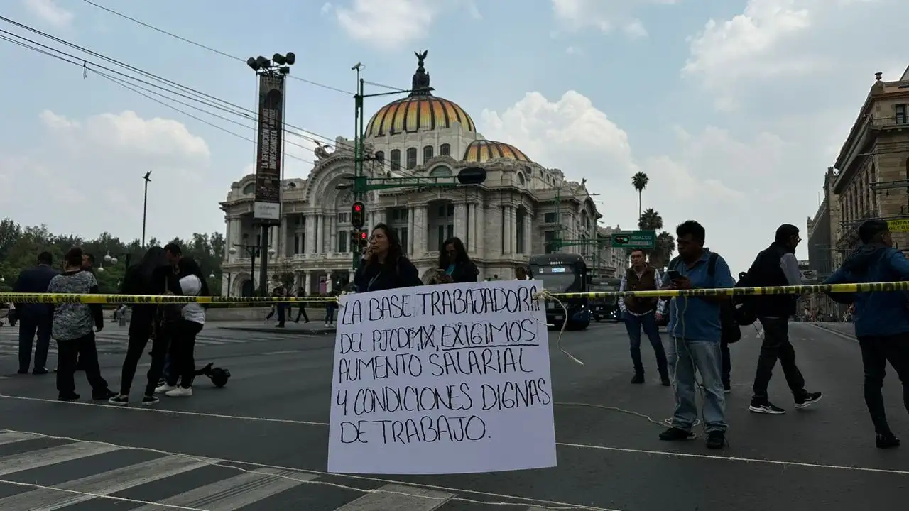 Ciudad de México. Trabajadores del PJ-CDMX bloquean el Eje Central Lázaro Cárdenas, al cruce con avenida Juárez, en el Centro Histórico. Foto Jair Cabrera Torres