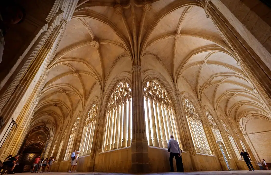 Segovia. Personas visitan el claustro de la Catedral de Segovia, en la región norteña de Castilla y León. El templo fue construido en estilo gótico flamígero a mediados del siglo XVI. Foto Afp / Thomas Coex