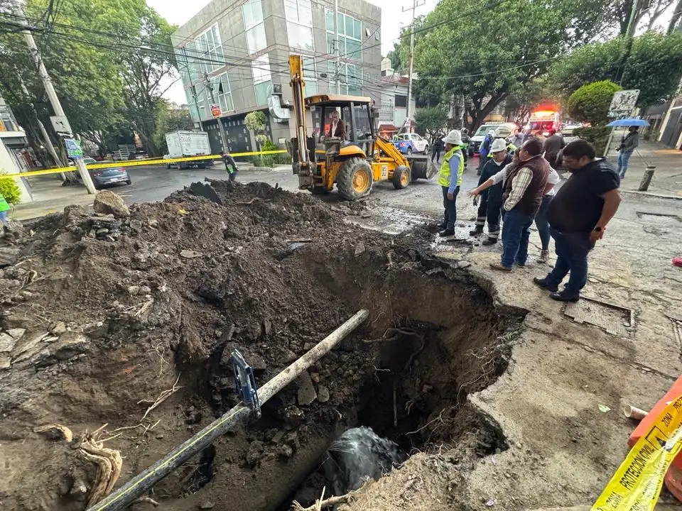 Trabajadores de la Secretaría de Gestión del Agua provocaron una fuga de gas natural mientras realizaban labores de reparación en la esquina de Correspondencia y Castilla, colonia Álamos. Bomberos y personal de la empresa de gas acudieron al lugar para controlar la emergencia. Foto: Víctor Camacho