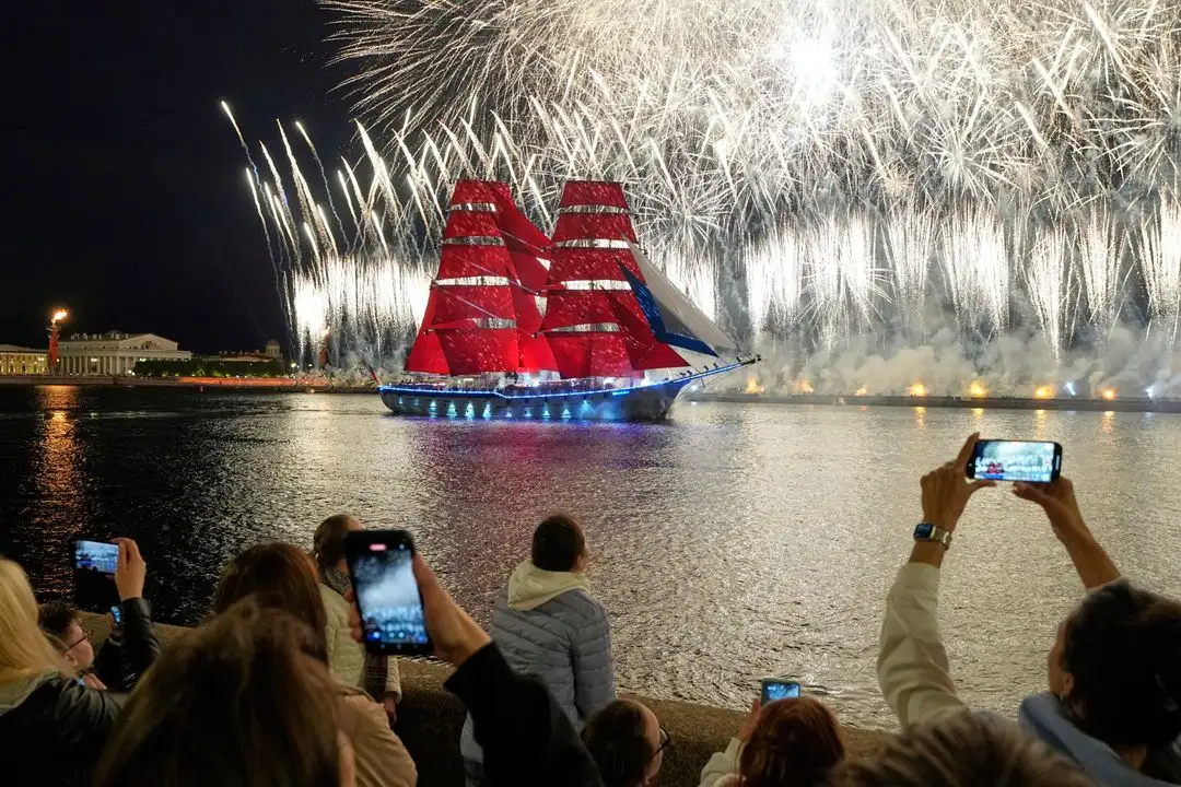 San Petersburgo. Un bergantín con velas escarlatas flota en el río Nevá durante las festividades de las Velas Escarlatas que conmemoran la graduación escolar en esta ciudad rusa. Foto Ap / Dmitri Lovetsky
