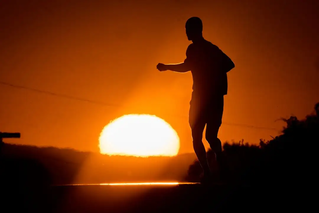 Frankfurt. Un hombre corre hacia el sol naciente por una pequeña carretera a las afueras de esta ciudad alemana. Foto Ap / Michael Probst