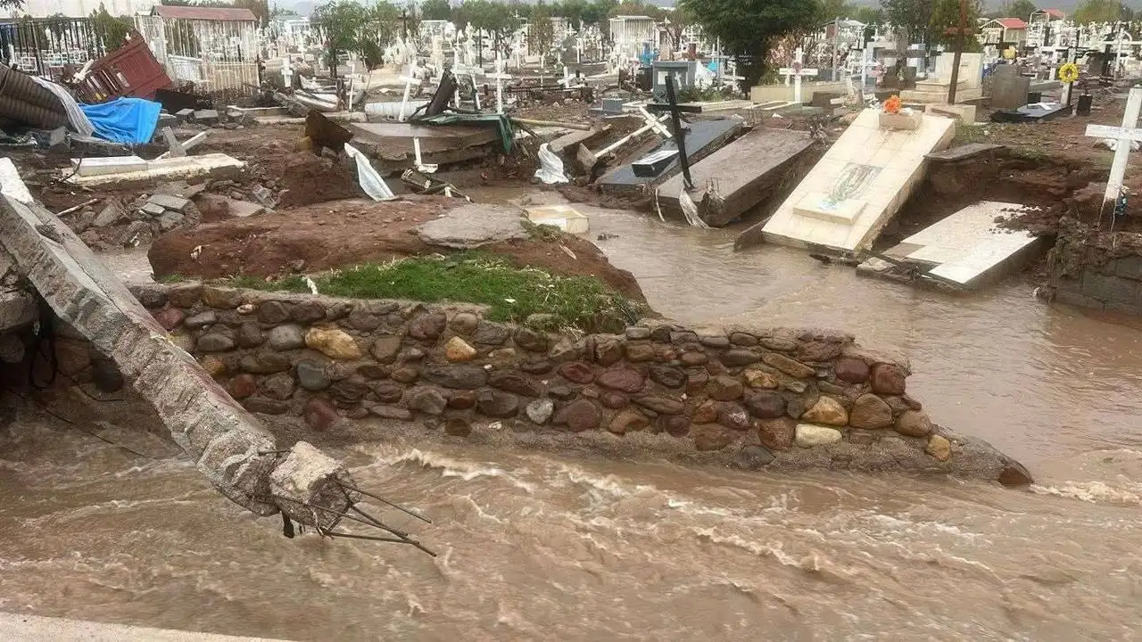 Ciudad de México. 1 de julio de 2025. Las fuertes lluvias registradas la tarde del lunes dejaron daños en varias regiones de Chihuahua y Tamaulipas. En la primera entidad, la tormenta provocó el desbordamiento de un arroyo que arrastró vehículos, inundó viviendas y desenterró tumbas en el panteón municipal 3, en la colonia Porvenir, en la capital. En tanto, en Tamaulipas, los habitantes del poblado El Limón, fueron rescatados de las inundaciones por elementos del Ejército Mexicano, de la Semar y Protección Civil; un autobús de pasajeros quedó varado en la México-Laredo, en tanto que en otra se registraron grietas. En San Luis Potosí también se reportaron calles y viviendas inundadas.