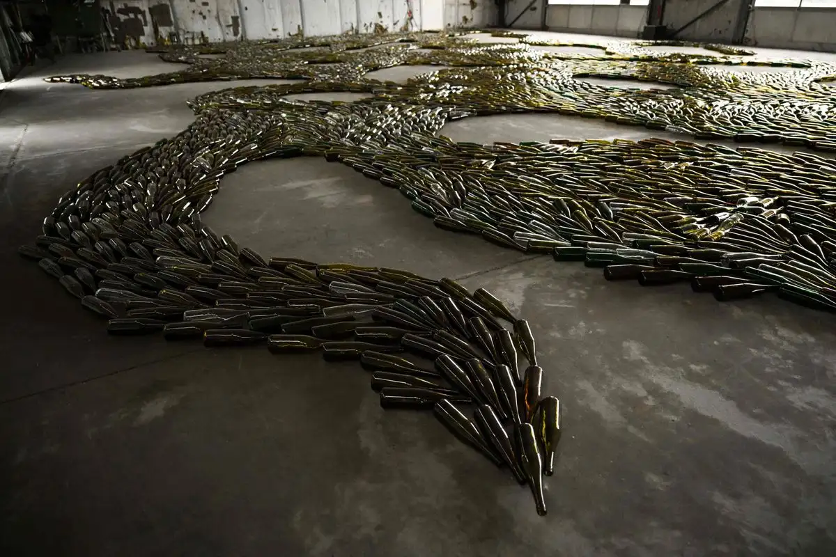 Prizren. Vista de la instalación 'Circulaciones', de la artista alemana Tamara Grcic, que consiste en un laberinto formado a partir de botellas, durante la 5ª edición de la Bienal de Autostrada, exposición internacional de arte contemporáneo celebrada en esta ciudad de Kosovo. Foto Afp / Armend Nimani