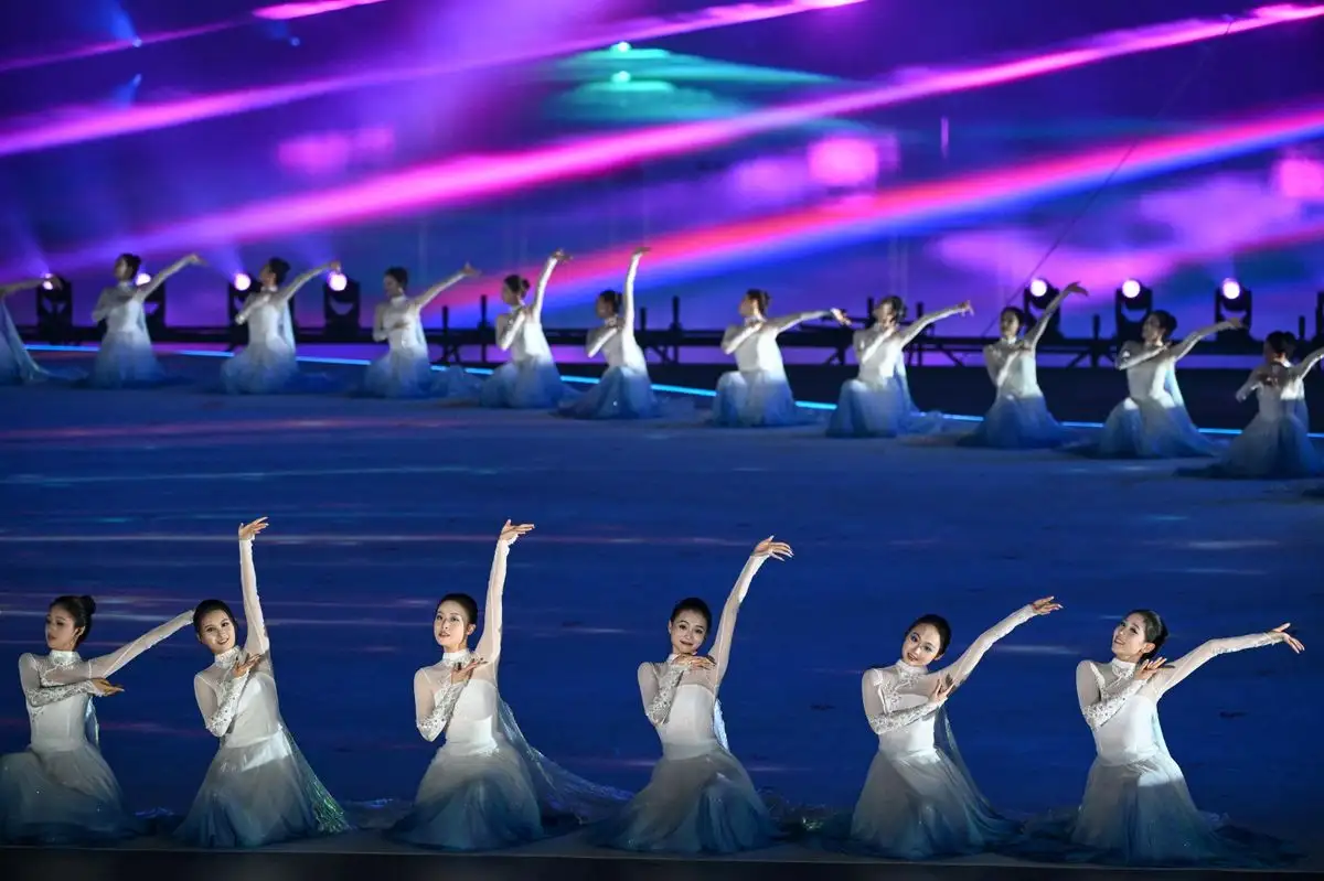 Chengdu. Artistas participan en la ceremonia inaugural de los Juegos Mundiales 2025 en el Centro Internacional de Convenciones de Tianfu en esta ciudad de la provincia de Sichuan, en el suroeste de China. Foto Afp / Jade Gao